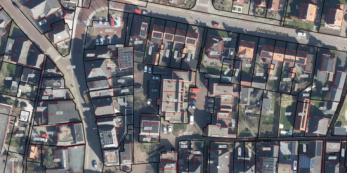 Het perceel waarop Veemarkt 15 staat heeft een oppervlakte van 593 m². Dit is een groot perceel. De perceeloppervlakte wordt geregistreerd door het Kadaster. Gedetailleerde informatie over de maten van dit perceel kunt u vinden in het rapport Kadastrale kaart met maatvoering van Veemarkt 15.