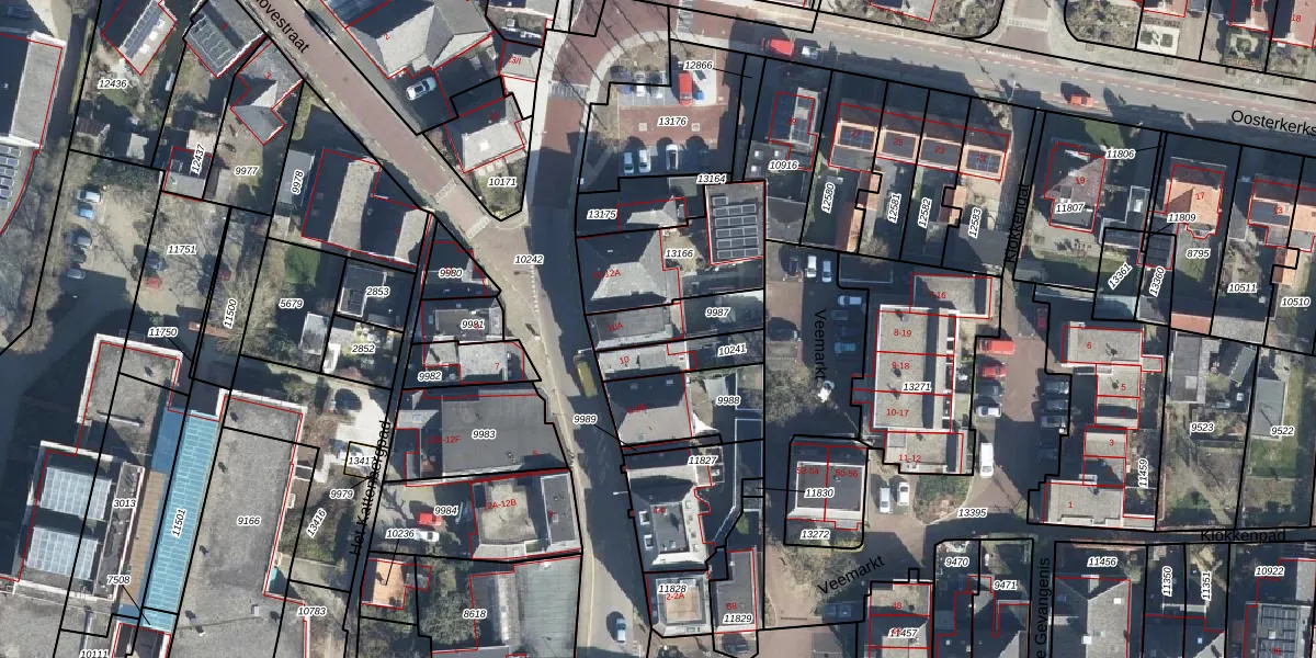 Het perceel waarop Veemarkt 21 staat heeft een oppervlakte van 166 m². Dit is een middelgroot perceel. De perceeloppervlakte wordt geregistreerd door het Kadaster. Gedetailleerde informatie over de maten van dit perceel kunt u vinden in het rapport Kadastrale kaart met maatvoering van Veemarkt 21.