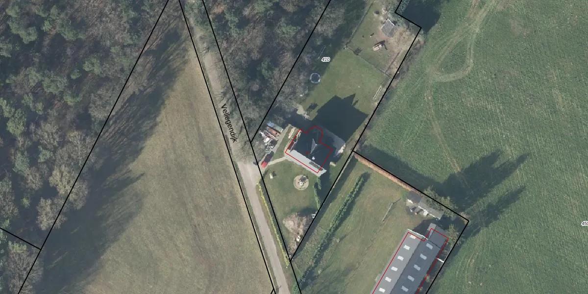 Het perceel waarop Vellegendijk 8 staat heeft een oppervlakte van 3430 m². Dit is een zeer groot perceel. De perceeloppervlakte wordt geregistreerd door het Kadaster. Gedetailleerde informatie over de maten van dit perceel kunt u vinden in het rapport Kadastrale kaart met maatvoering van Vellegendijk 8.