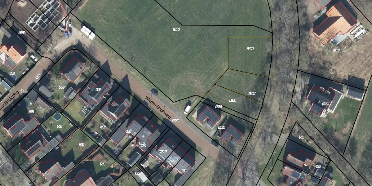 Het perceel waarop Warmelinckweg 1-T staat heeft een oppervlakte van 3178 m². Dit is een zeer groot perceel. De perceeloppervlakte wordt geregistreerd door het Kadaster. Gedetailleerde informatie over de maten van dit perceel kunt u vinden in het rapport Kadastrale kaart met maatvoering van Warmelinckweg 1-T.
