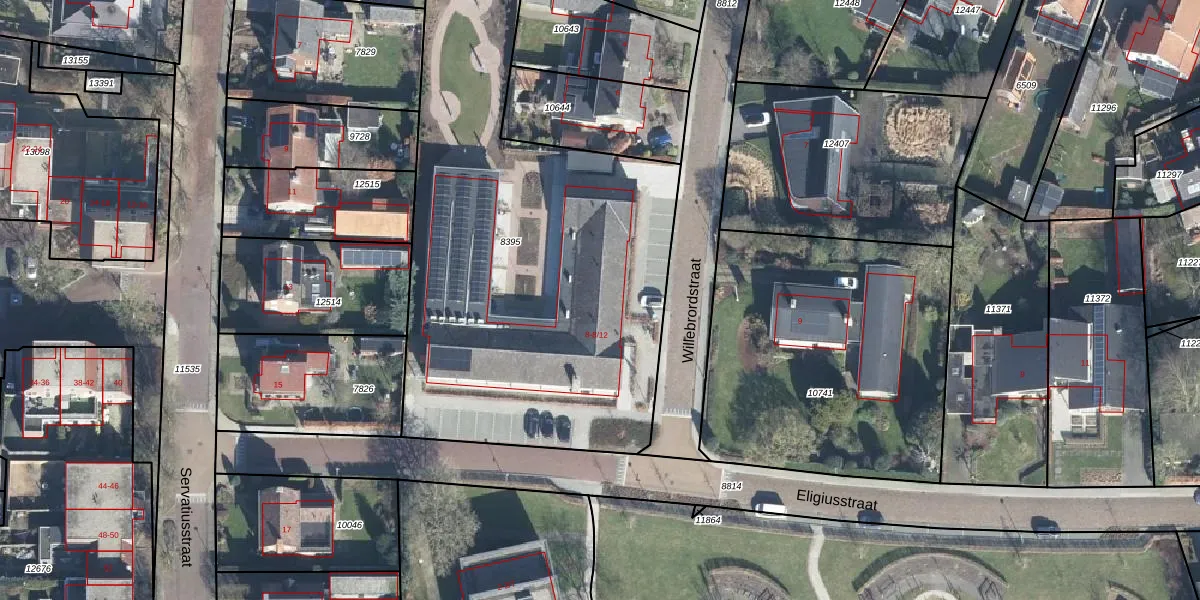 Het perceel waarop Willebrordstraat 8-04 staat heeft een oppervlakte van 2597 m². Dit is een zeer groot perceel. De perceeloppervlakte wordt geregistreerd door het Kadaster. Gedetailleerde informatie over de maten van dit perceel kunt u vinden in het rapport Kadastrale kaart met maatvoering van Willebrordstraat 8-04.