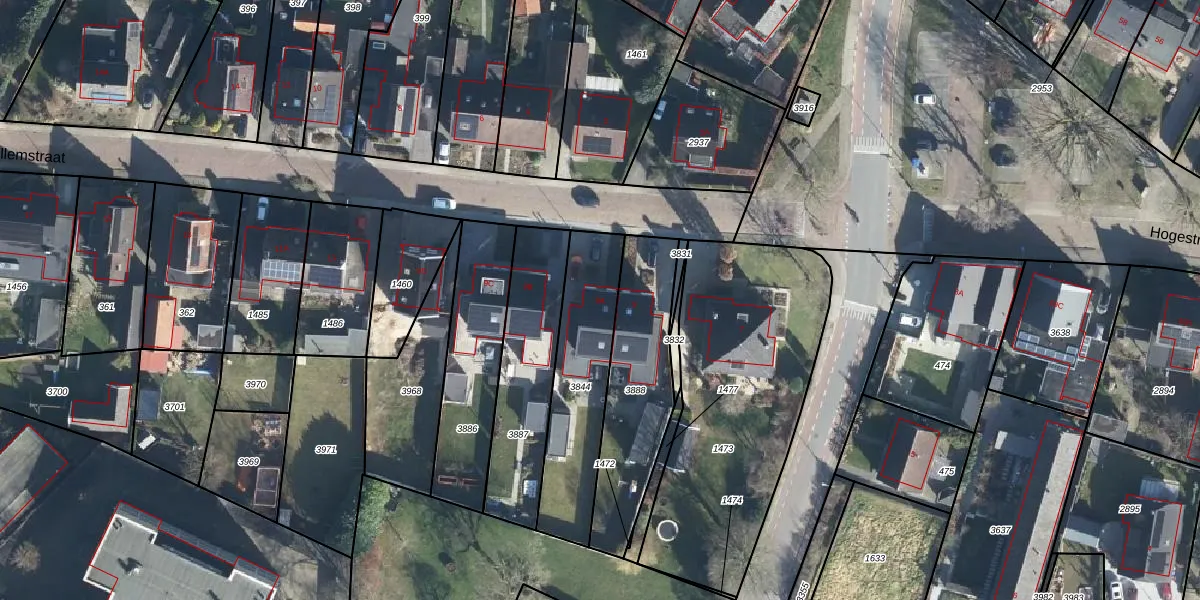 Het perceel waarop Willemstraat 9-A staat heeft een oppervlakte van 469 m². Dit is een groot perceel. De perceeloppervlakte wordt geregistreerd door het Kadaster. Gedetailleerde informatie over de maten van dit perceel kunt u vinden in het rapport Kadastrale kaart met maatvoering van Willemstraat 9-A.