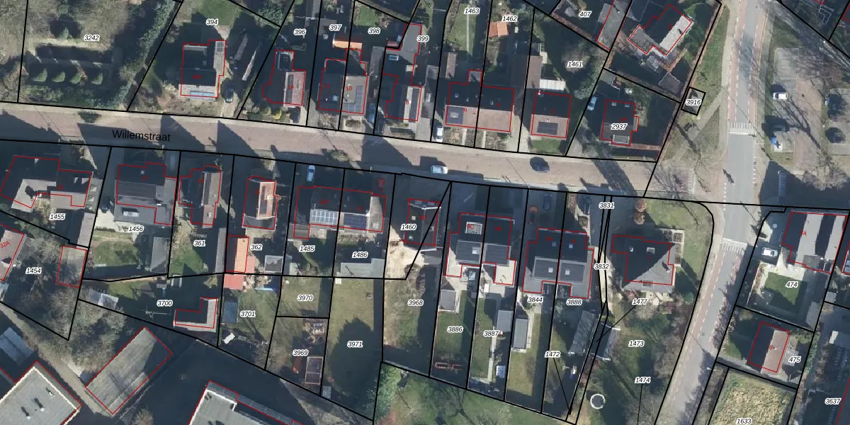 Het perceel waarop Willemstraat 9-D staat heeft een oppervlakte van 225 m². Dit is een middelgroot perceel. De perceeloppervlakte wordt geregistreerd door het Kadaster. Gedetailleerde informatie over de maten van dit perceel kunt u vinden in het rapport Kadastrale kaart met maatvoering van Willemstraat 9-D.