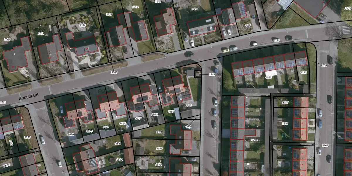 Bootstraat 15 is gelegen op kadastraal perceel ADB00E3666. Deze kadastrale aanduiding is uniek en wordt gebruikt door het Kadaster om eigendomsrechten en andere zakelijke rechten vast te leggen. Het perceel maakt onderdeel uit van de kadastrale gemeente Aardenburg.