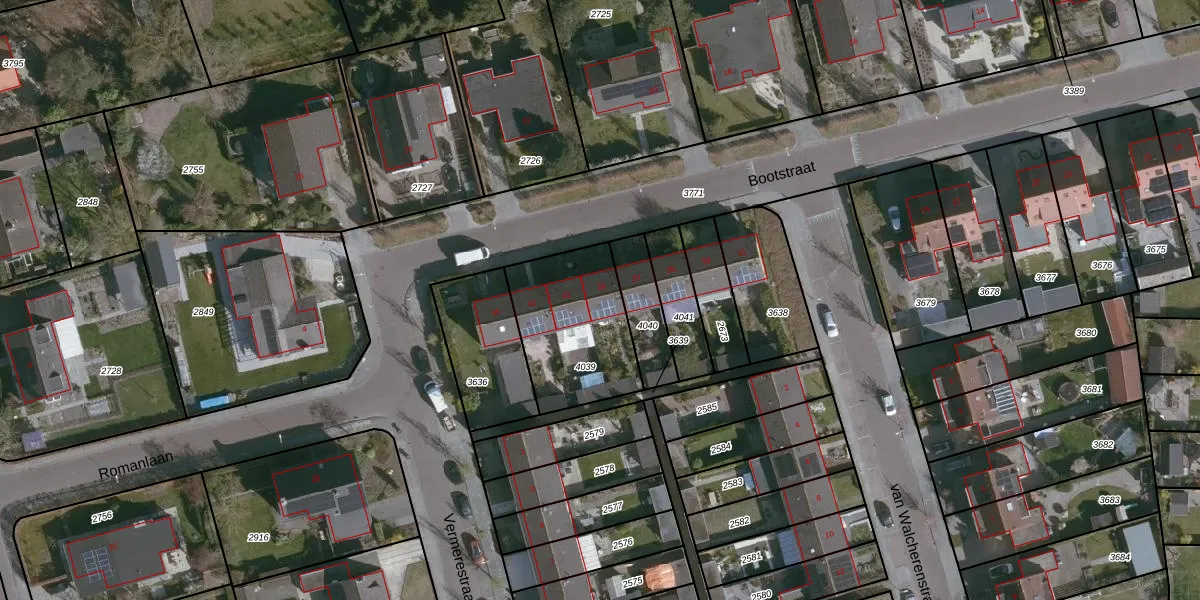 Bootstraat 39 is gelegen op kadastraal perceel ADB00E4039. Deze kadastrale aanduiding is uniek en wordt gebruikt door het Kadaster om eigendomsrechten en andere zakelijke rechten vast te leggen. Het perceel maakt onderdeel uit van de kadastrale gemeente Aardenburg.