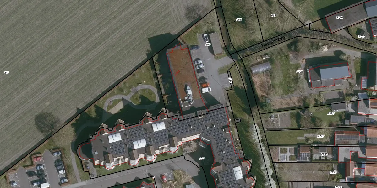 Havensteeg 1-001 is gelegen op kadastraal perceel ADB00M386. Deze kadastrale aanduiding is uniek en wordt gebruikt door het Kadaster om eigendomsrechten en andere zakelijke rechten vast te leggen. Het perceel maakt onderdeel uit van de kadastrale gemeente Aardenburg.