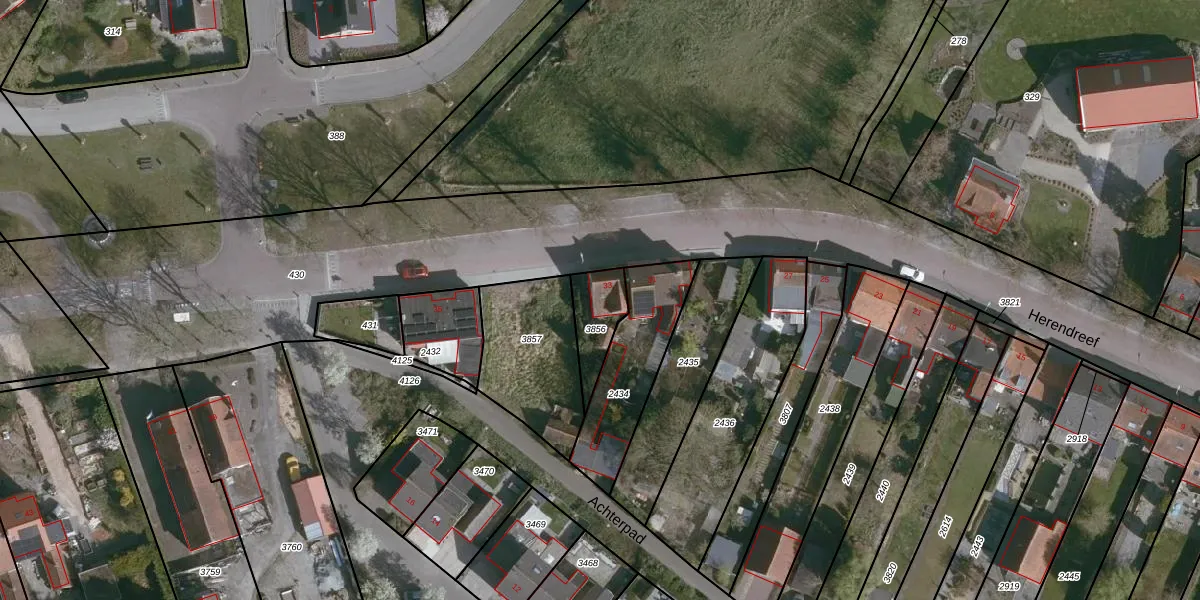 Herendreef 33 is gelegen op kadastraal perceel ADB00E3856. Deze kadastrale aanduiding is uniek en wordt gebruikt door het Kadaster om eigendomsrechten en andere zakelijke rechten vast te leggen. Het perceel maakt onderdeel uit van de kadastrale gemeente Aardenburg.