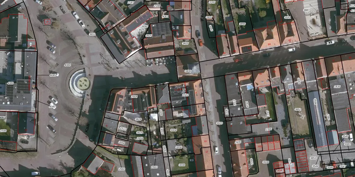 Kaai 1-101 is gelegen op kadastraal perceel ADB00E2022. Deze kadastrale aanduiding is uniek en wordt gebruikt door het Kadaster om eigendomsrechten en andere zakelijke rechten vast te leggen. Het perceel maakt onderdeel uit van de kadastrale gemeente Aardenburg.