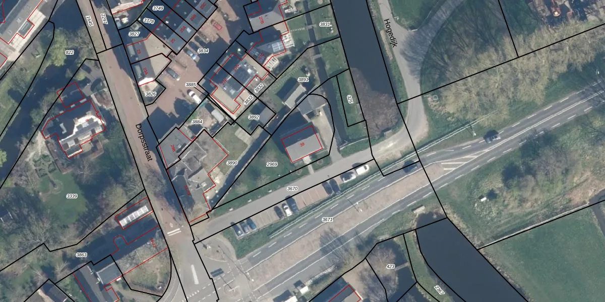 Het perceel waarop Dorpsstraat 39 staat heeft een oppervlakte van 502 m². Dit is een groot perceel. De perceeloppervlakte wordt geregistreerd door het Kadaster. Gedetailleerde informatie over de maten van dit perceel kunt u vinden in het rapport Kadastrale kaart met maatvoering van Dorpsstraat 39.