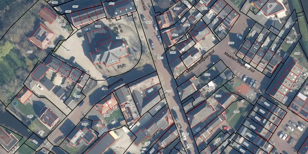 Gebruik de zoekbalk of klik op een perceel voor informatie over de adressen binnen dit perceel.