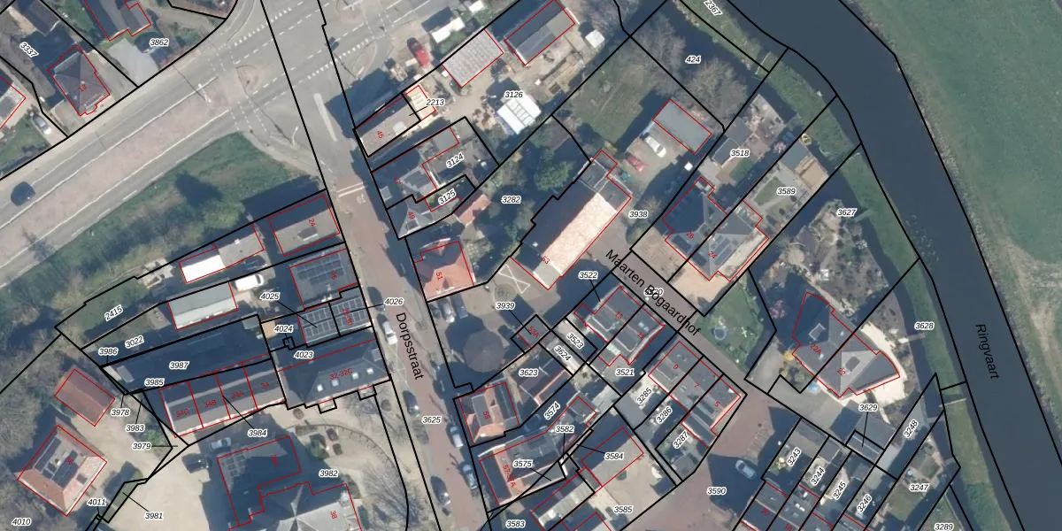 Het perceel waarop Dorpsstraat 53 staat heeft een oppervlakte van 1265 m². Dit is een zeer groot perceel. De perceeloppervlakte wordt geregistreerd door het Kadaster. Gedetailleerde informatie over de maten van dit perceel kunt u vinden in het rapport Kadastrale kaart met maatvoering van Dorpsstraat 53.