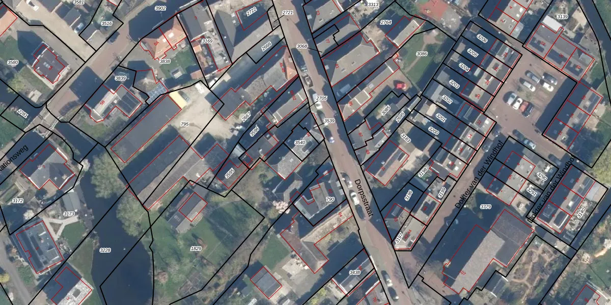 Het perceel waarop Dorpsstraat 54 staat heeft een oppervlakte van 65 m². Dit is een klein perceel. De perceeloppervlakte wordt geregistreerd door het Kadaster. Gedetailleerde informatie over de maten van dit perceel kunt u vinden in het rapport Kadastrale kaart met maatvoering van Dorpsstraat 54.