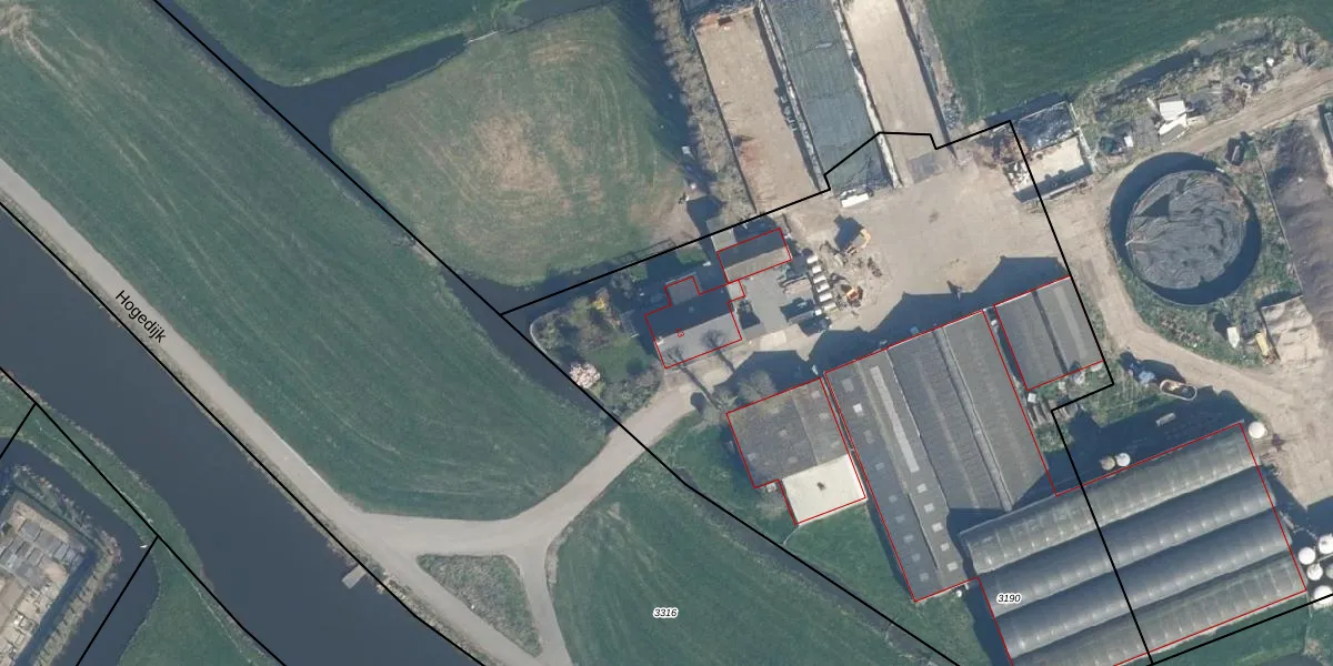 Het perceel waarop Hogedijk 13 staat heeft een oppervlakte van 4400 m². Dit is een zeer groot perceel. De perceeloppervlakte wordt geregistreerd door het Kadaster. Gedetailleerde informatie over de maten van dit perceel kunt u vinden in het rapport Kadastrale kaart met maatvoering van Hogedijk 13.