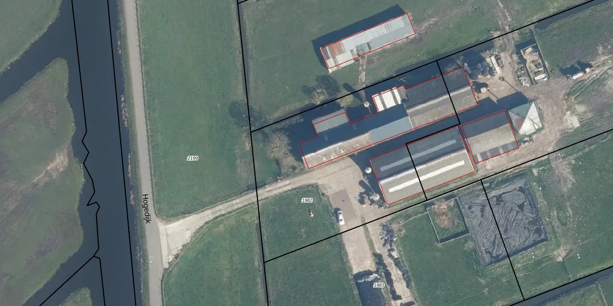 Het perceel waarop Hogedijk 5 staat heeft een oppervlakte van 2580 m². Dit is een zeer groot perceel. De perceeloppervlakte wordt geregistreerd door het Kadaster. Gedetailleerde informatie over de maten van dit perceel kunt u vinden in het rapport Kadastrale kaart met maatvoering van Hogedijk 5.