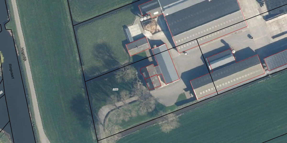 Het perceel waarop Hogedijk 7 staat heeft een oppervlakte van 3665 m². Dit is een zeer groot perceel. De perceeloppervlakte wordt geregistreerd door het Kadaster. Gedetailleerde informatie over de maten van dit perceel kunt u vinden in het rapport Kadastrale kaart met maatvoering van Hogedijk 7.