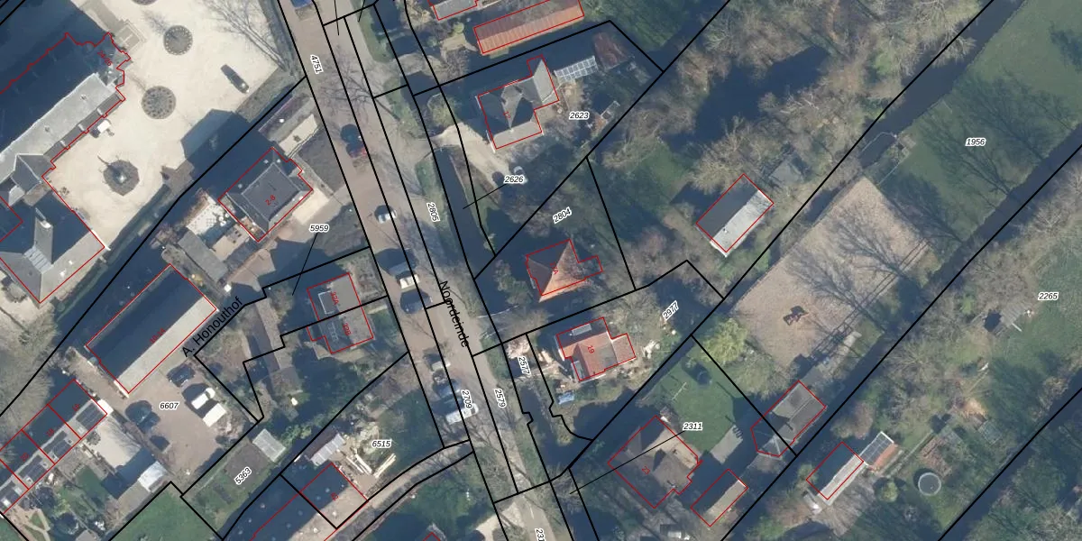 Het adres ligt op het perceel ALD00-A-2804, dat zich in de kadastrale gemeente Aarlanderveen bevindt. Het perceel is 540 m² groot. Dat is kleiner dan de gemiddelde perceeloppervlakte in Aarlanderveen, dat op 4521,99 m² ligt. De grootste perceeloppervlakte in de kadastrale gemeente is 71,0 ha. De kleinste oppervlakte bedraagt 0 m². Er zijn geen andere adressen aanwezig op het perceel. De laatste wijziging in het de Basisregistratie Kadaster (BRK) was op 19-06-2000.