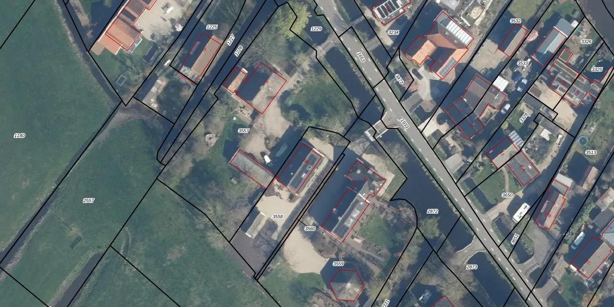 Het adres is gelegen op perceel 3558 in de sectie A en de kadastrale gemeente Aarlanderveen. De kadastrale aanduiding is aldus ALD00-A-3558. De gemiddelde perceelgrootte in Aarlanderveen is 4521,99 m². Dit perceel is kleiner: de perceeloppervlakte bedraagt 677 m². Het grootste perceel in de kadastrale gemeente is 71,0 ha. Het kleinste perceel heeft een oppervlakte van 0 m². Dit is het enige adres dat aanwezig is op het perceel. De huidige grenzen van het perceel zijn digitaal in de Basisregistratie Kadaster (BRK) geregistreerd op 17-10-2005.