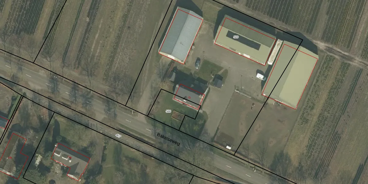 Het perceel waarop Bakelseweg 21 staat heeft een oppervlakte van 4648 m². Dit is een zeer groot perceel. De perceeloppervlakte wordt geregistreerd door het Kadaster. Gedetailleerde informatie over de maten van dit perceel kunt u vinden in het rapport Kadastrale kaart met maatvoering van Bakelseweg 21.