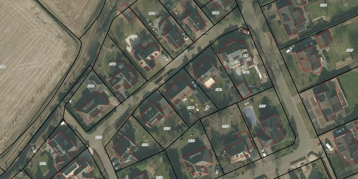 Beatrixlaan 6 is gelegen op kadastraal perceel ALE00A2580. Deze kadastrale aanduiding is uniek en wordt gebruikt door het Kadaster om eigendomsrechten en andere zakelijke rechten vast te leggen. Het perceel maakt onderdeel uit van de kadastrale gemeente Aarle-Rixtel.