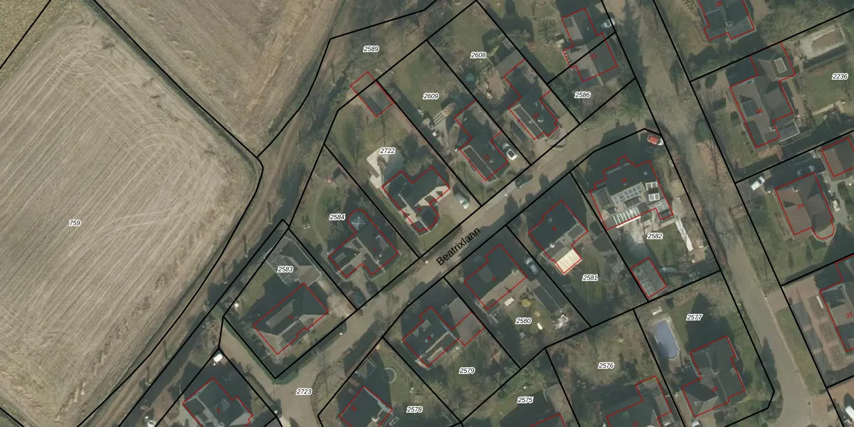 Beatrixlaan 9 is gelegen op kadastraal perceel ALE00A2722. Deze kadastrale aanduiding is uniek en wordt gebruikt door het Kadaster om eigendomsrechten en andere zakelijke rechten vast te leggen. Het perceel maakt onderdeel uit van de kadastrale gemeente Aarle-Rixtel.
