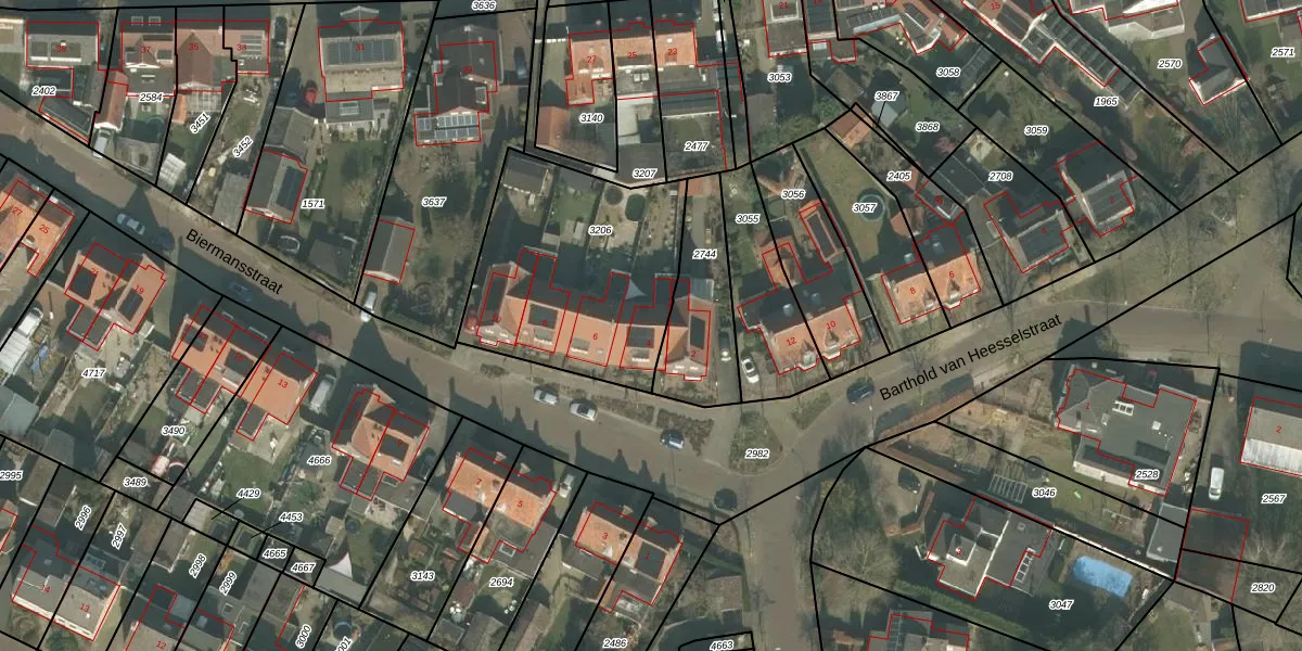 Het perceel waarop Biermansstraat 4 staat heeft een oppervlakte van 918 m². Dit is een groot perceel. De perceeloppervlakte wordt geregistreerd door het Kadaster. Gedetailleerde informatie over de maten van dit perceel kunt u vinden in het rapport Kadastrale kaart met maatvoering van Biermansstraat 4.