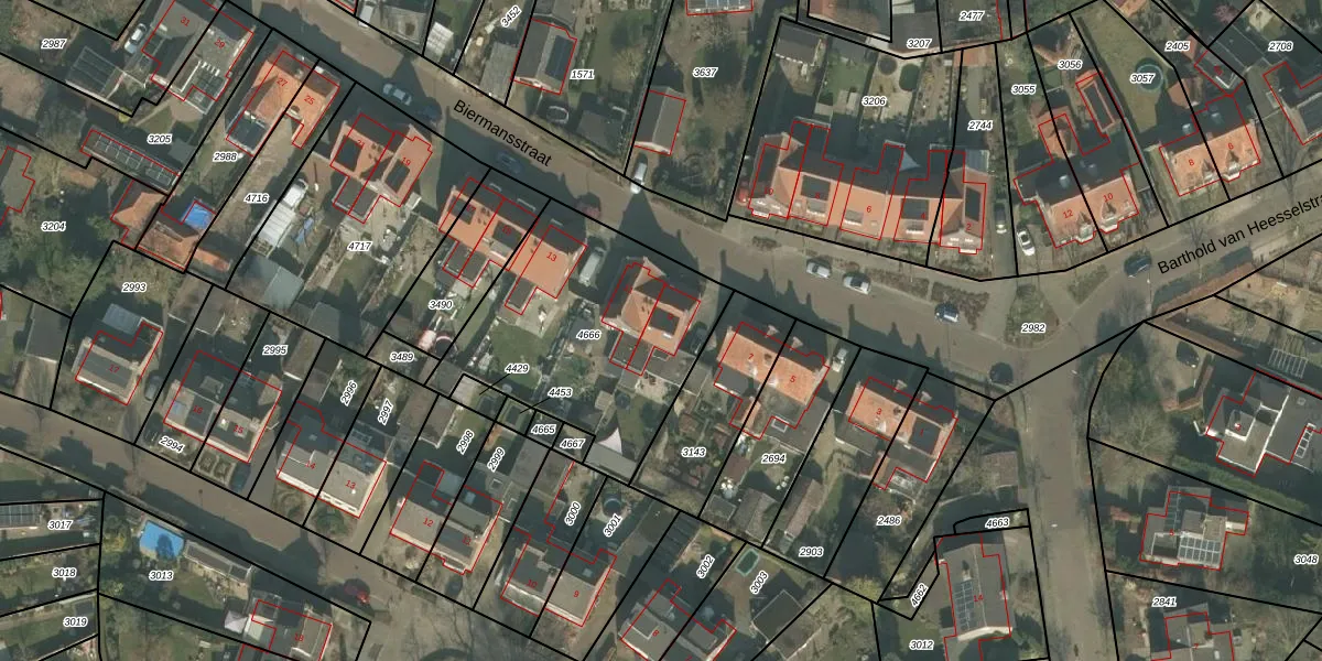 Het perceel waarop Biermansstraat 9 staat heeft een oppervlakte van 999 m². Dit is een groot perceel. De perceeloppervlakte wordt geregistreerd door het Kadaster. Gedetailleerde informatie over de maten van dit perceel kunt u vinden in het rapport Kadastrale kaart met maatvoering van Biermansstraat 9.