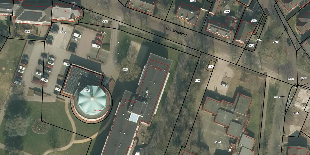 Bosscheweg 20 is gelegen op kadastraal perceel ALE00C4485. Deze kadastrale aanduiding is uniek en wordt gebruikt door het Kadaster om eigendomsrechten en andere zakelijke rechten vast te leggen. Het perceel maakt onderdeel uit van de kadastrale gemeente Aarle-Rixtel.