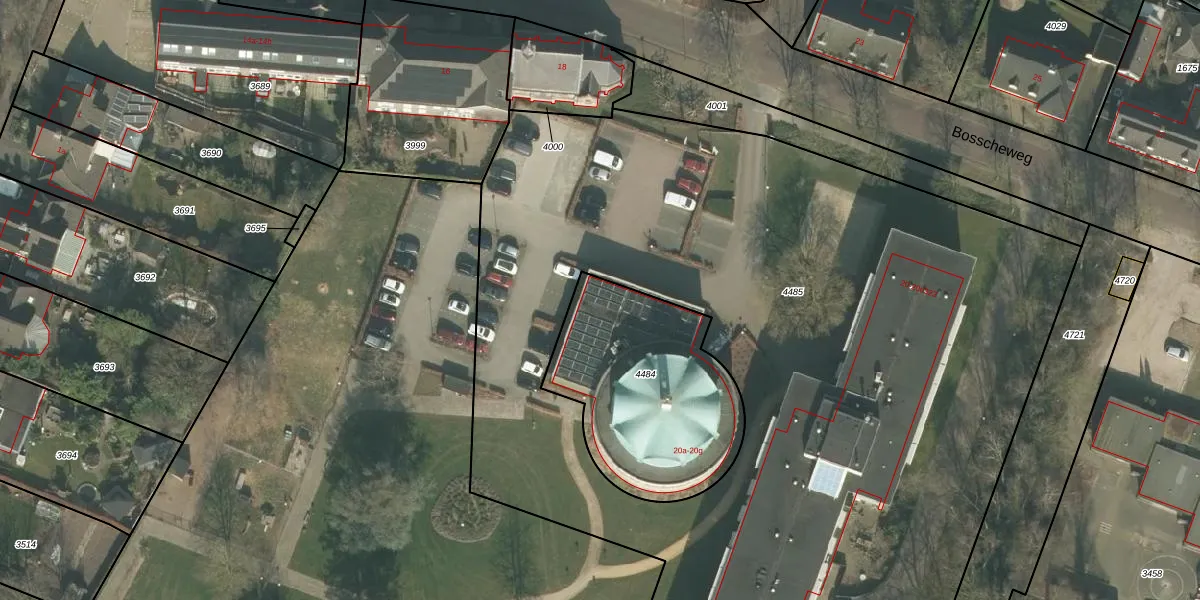 Bosscheweg 20-b is gelegen op kadastraal perceel ALE00C4484. Deze kadastrale aanduiding is uniek en wordt gebruikt door het Kadaster om eigendomsrechten en andere zakelijke rechten vast te leggen. Het perceel maakt onderdeel uit van de kadastrale gemeente Aarle-Rixtel.