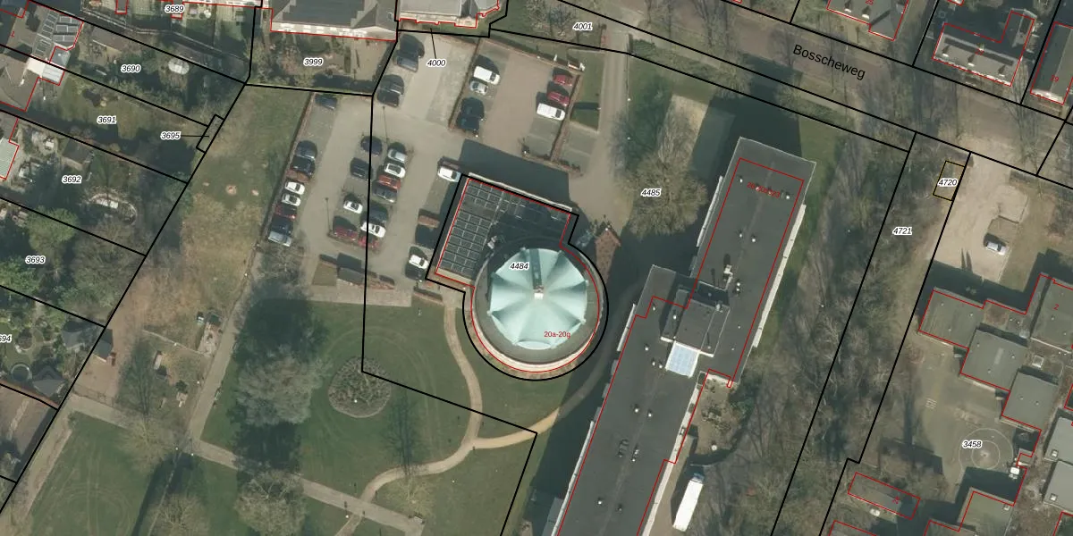 Bosscheweg 20-g is gelegen op kadastraal perceel ALE00C4484. Deze kadastrale aanduiding is uniek en wordt gebruikt door het Kadaster om eigendomsrechten en andere zakelijke rechten vast te leggen. Het perceel maakt onderdeel uit van de kadastrale gemeente Aarle-Rixtel.