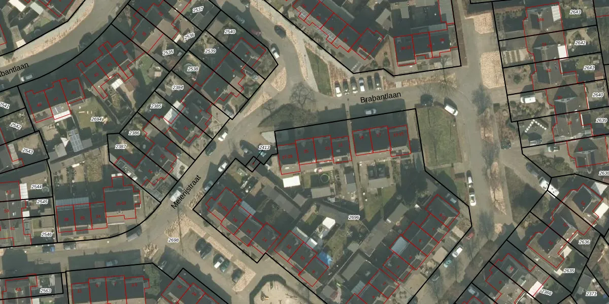 Brabantlaan 25 is gelegen op kadastraal perceel ALE00A2696. Deze kadastrale aanduiding is uniek en wordt gebruikt door het Kadaster om eigendomsrechten en andere zakelijke rechten vast te leggen. Het perceel maakt onderdeel uit van de kadastrale gemeente Aarle-Rixtel.