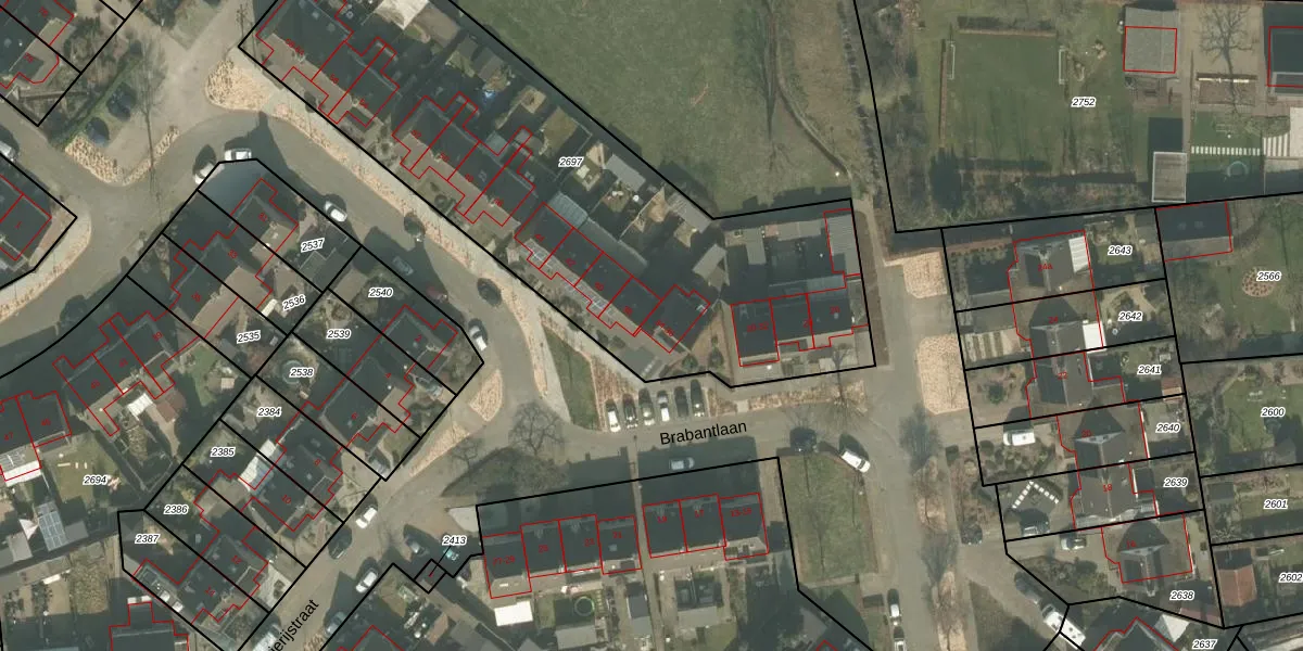 Het perceel waarop Brabantlaan 36 staat heeft een oppervlakte van 2731 m². Dit is een zeer groot perceel. De perceeloppervlakte wordt geregistreerd door het Kadaster. Gedetailleerde informatie over de maten van dit perceel kunt u vinden in het rapport Kadastrale kaart met maatvoering van Brabantlaan 36.