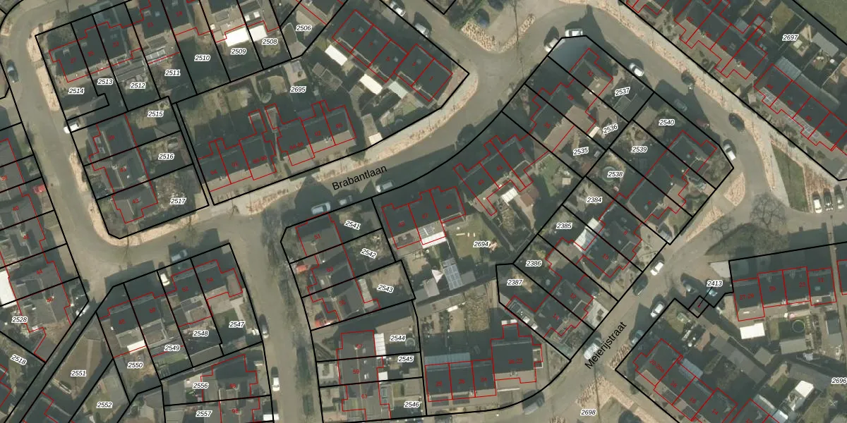 Het perceel waarop Brabantlaan 47 staat heeft een oppervlakte van 1969 m². Dit is een zeer groot perceel. De perceeloppervlakte wordt geregistreerd door het Kadaster. Gedetailleerde informatie over de maten van dit perceel kunt u vinden in het rapport Kadastrale kaart met maatvoering van Brabantlaan 47.