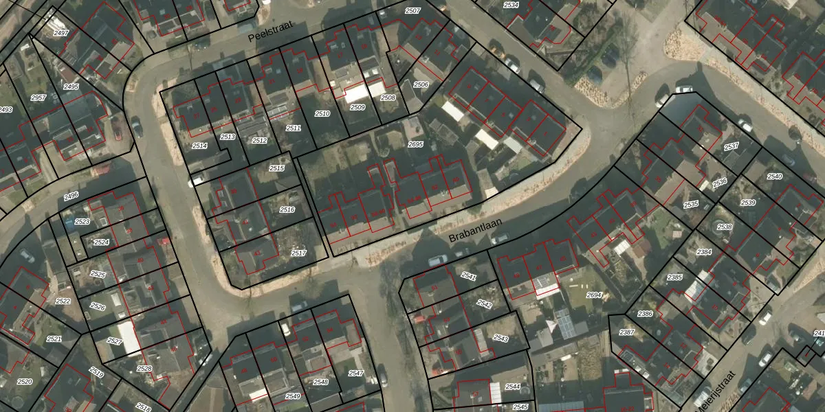 Het perceel waarop Brabantlaan 84 staat heeft een oppervlakte van 1715 m². Dit is een zeer groot perceel. De perceeloppervlakte wordt geregistreerd door het Kadaster. Gedetailleerde informatie over de maten van dit perceel kunt u vinden in het rapport Kadastrale kaart met maatvoering van Brabantlaan 84.