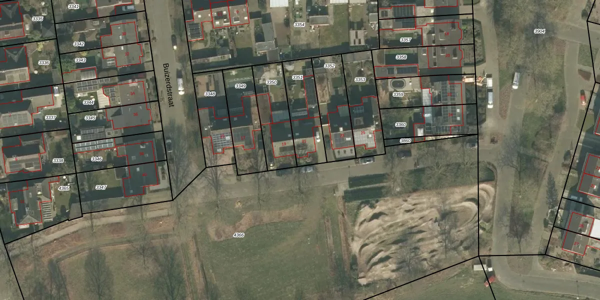 Buizerdstraat 21 is gelegen op kadastraal perceel ALE00C3351. Deze kadastrale aanduiding is uniek en wordt gebruikt door het Kadaster om eigendomsrechten en andere zakelijke rechten vast te leggen. Het perceel maakt onderdeel uit van de kadastrale gemeente Aarle-Rixtel.