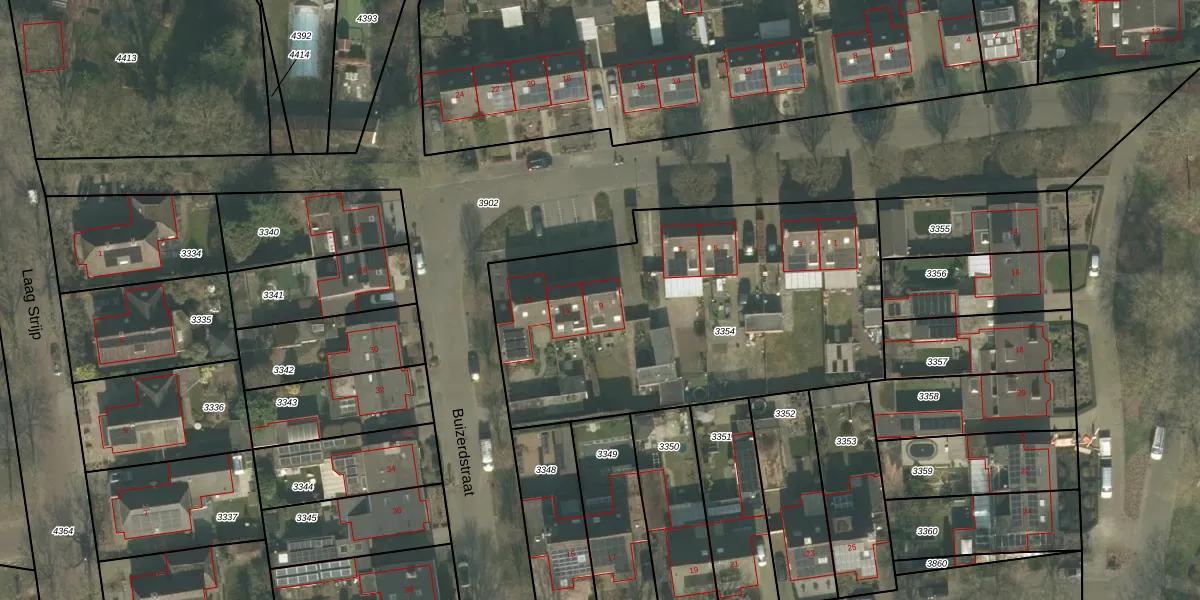 Buizerdstraat 9 is gelegen op kadastraal perceel ALE00C3354. Deze kadastrale aanduiding is uniek en wordt gebruikt door het Kadaster om eigendomsrechten en andere zakelijke rechten vast te leggen. Het perceel maakt onderdeel uit van de kadastrale gemeente Aarle-Rixtel.
