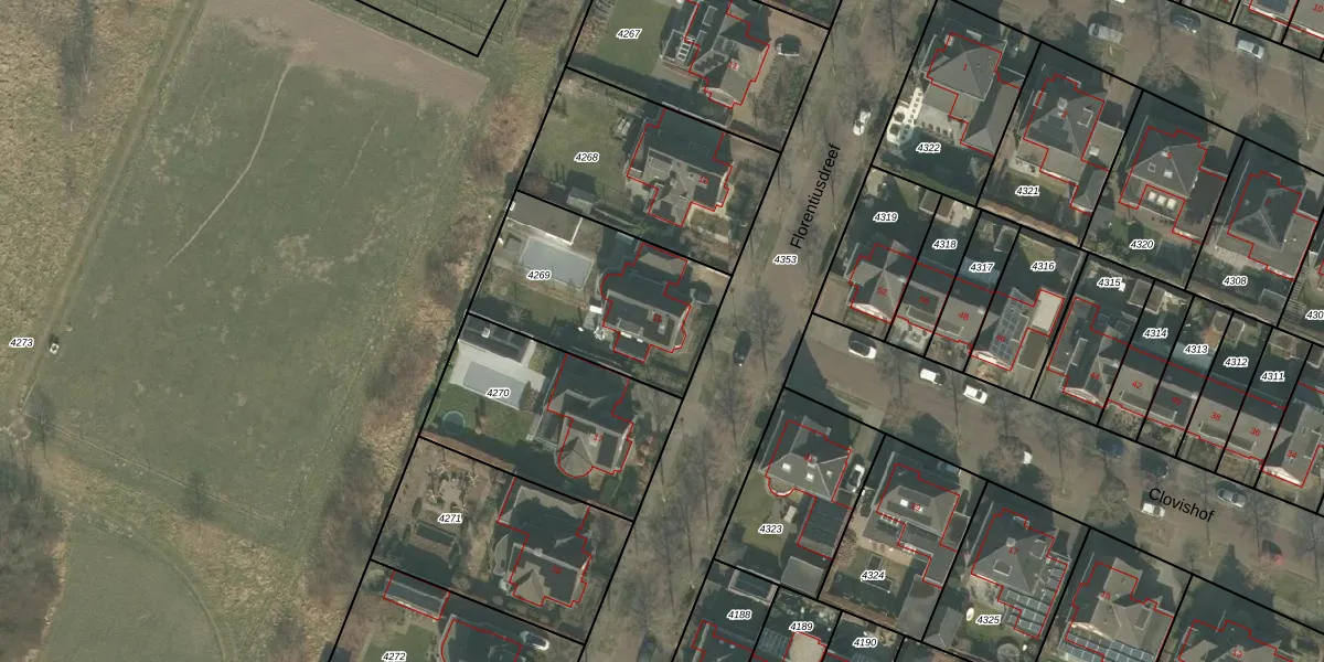 Het perceel waarop Florentiusdreef 15 staat heeft een oppervlakte van 703 m². Dit is een groot perceel. De perceeloppervlakte wordt geregistreerd door het Kadaster. Gedetailleerde informatie over de maten van dit perceel kunt u vinden in het rapport Kadastrale kaart met maatvoering van Florentiusdreef 15.