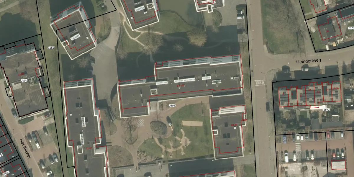Het perceel waarop Heindertweg 123 staat heeft een oppervlakte van 1,5 ha. Dit is een zeer groot perceel. De perceeloppervlakte wordt geregistreerd door het Kadaster. Gedetailleerde informatie over de maten van dit perceel kunt u vinden in het rapport Kadastrale kaart met maatvoering van Heindertweg 123.