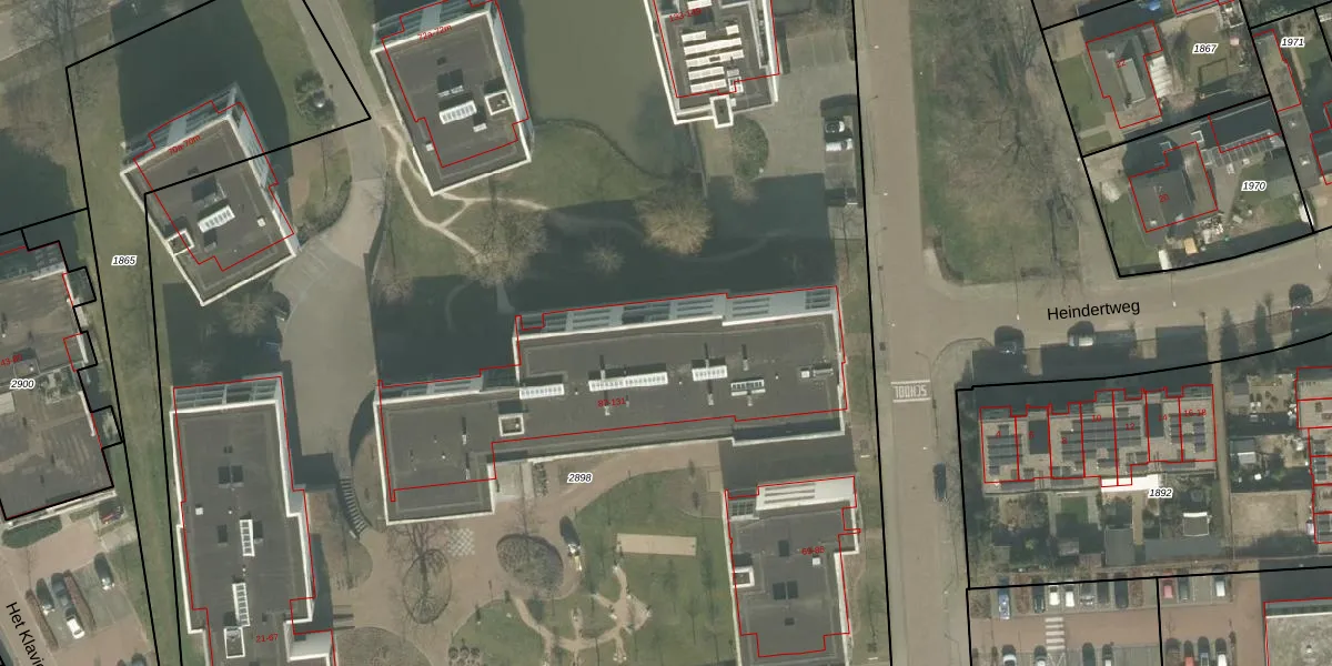 Het perceel waarop Heindertweg 125 staat heeft een oppervlakte van 1,5 ha. Dit is een zeer groot perceel. De perceeloppervlakte wordt geregistreerd door het Kadaster. Gedetailleerde informatie over de maten van dit perceel kunt u vinden in het rapport Kadastrale kaart met maatvoering van Heindertweg 125.
