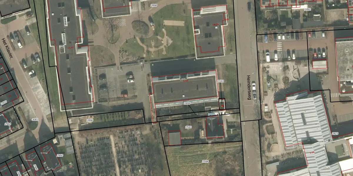 Het perceel waarop Heindertweg 15 staat heeft een oppervlakte van 1,5 ha. Dit is een zeer groot perceel. De perceeloppervlakte wordt geregistreerd door het Kadaster. Gedetailleerde informatie over de maten van dit perceel kunt u vinden in het rapport Kadastrale kaart met maatvoering van Heindertweg 15.