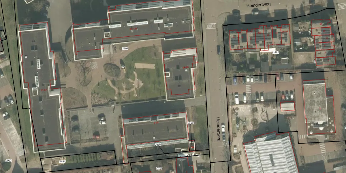 Het perceel waarop Heindertweg 75 staat heeft een oppervlakte van 1,5 ha. Dit is een zeer groot perceel. De perceeloppervlakte wordt geregistreerd door het Kadaster. Gedetailleerde informatie over de maten van dit perceel kunt u vinden in het rapport Kadastrale kaart met maatvoering van Heindertweg 75.