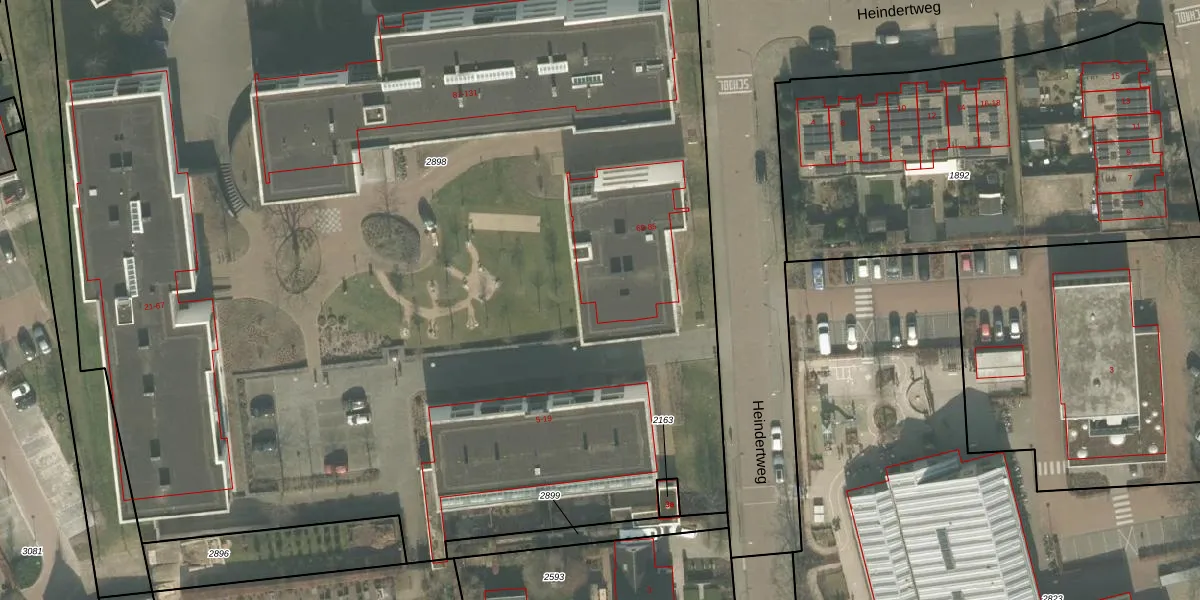 Het perceel waarop Heindertweg 81 staat heeft een oppervlakte van 1,5 ha. Dit is een zeer groot perceel. De perceeloppervlakte wordt geregistreerd door het Kadaster. Gedetailleerde informatie over de maten van dit perceel kunt u vinden in het rapport Kadastrale kaart met maatvoering van Heindertweg 81.