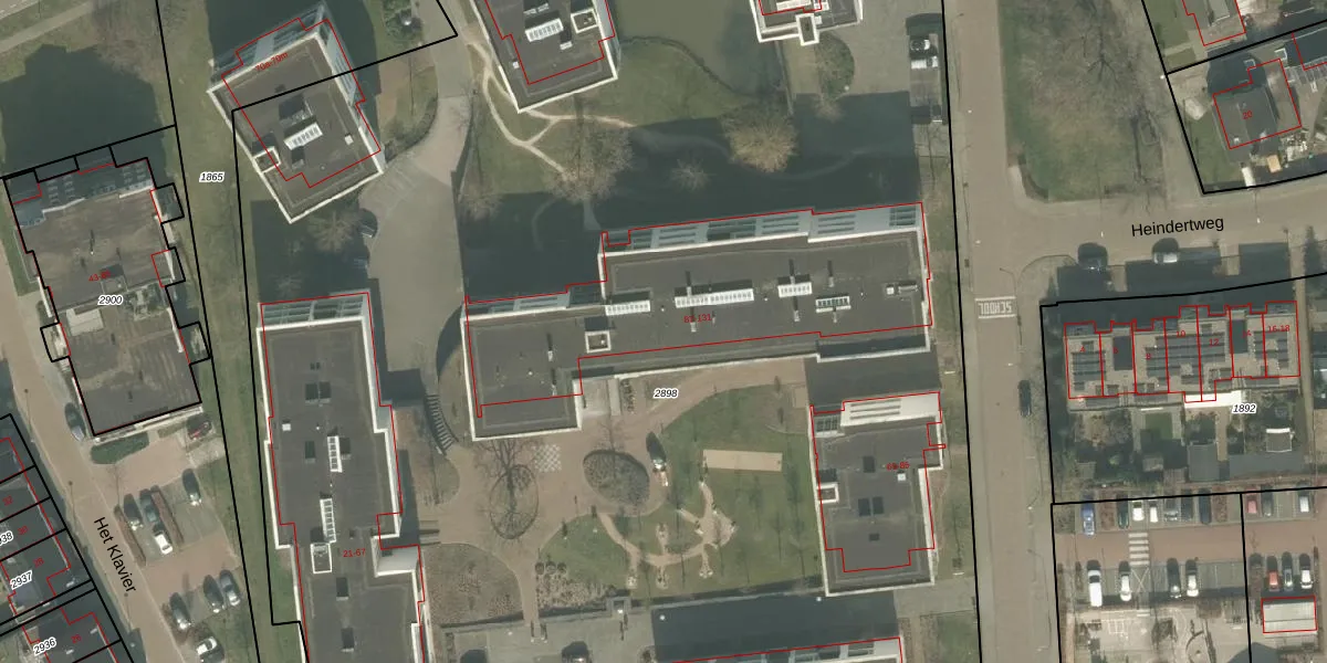 Het perceel waarop Heindertweg 91 staat heeft een oppervlakte van 1,5 ha. Dit is een zeer groot perceel. De perceeloppervlakte wordt geregistreerd door het Kadaster. Gedetailleerde informatie over de maten van dit perceel kunt u vinden in het rapport Kadastrale kaart met maatvoering van Heindertweg 91.