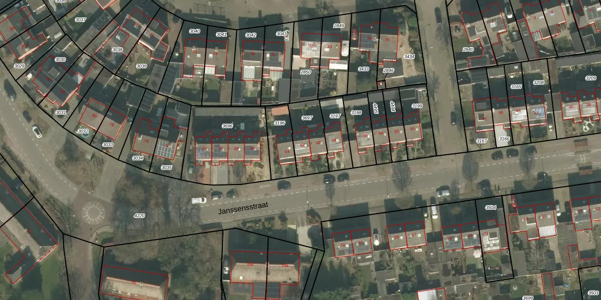 Het perceel waarop Janssensstraat 62 staat heeft een oppervlakte van 260 m². Dit is een middelgroot perceel. De perceeloppervlakte wordt geregistreerd door het Kadaster. Gedetailleerde informatie over de maten van dit perceel kunt u vinden in het rapport Kadastrale kaart met maatvoering van Janssensstraat 62.