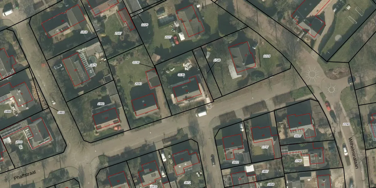 Het perceel waarop Phaffstraat 31 staat heeft een oppervlakte van 648 m². Dit is een groot perceel. De perceeloppervlakte wordt geregistreerd door het Kadaster. Gedetailleerde informatie over de maten van dit perceel kunt u vinden in het rapport Kadastrale kaart met maatvoering van Phaffstraat 31.