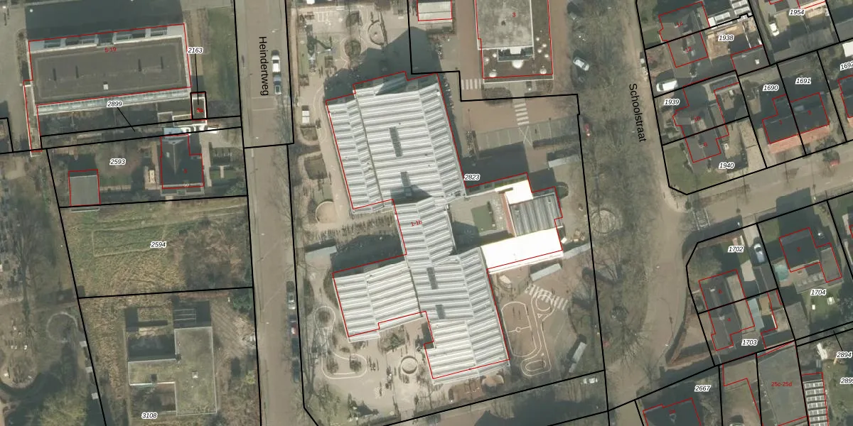 Het perceel waarop Schoolstraat 1-b staat heeft een oppervlakte van 6236 m². Dit is een zeer groot perceel. De perceeloppervlakte wordt geregistreerd door het Kadaster. Gedetailleerde informatie over de maten van dit perceel kunt u vinden in het rapport Kadastrale kaart met maatvoering van Schoolstraat 1-b.