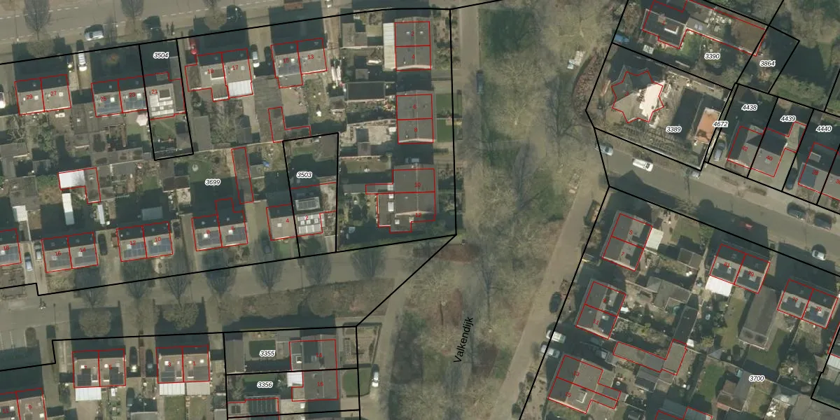 Valkendijk 12 is gelegen op kadastraal perceel ALE00C3699. Deze kadastrale aanduiding is uniek en wordt gebruikt door het Kadaster om eigendomsrechten en andere zakelijke rechten vast te leggen. Het perceel maakt onderdeel uit van de kadastrale gemeente Aarle-Rixtel.