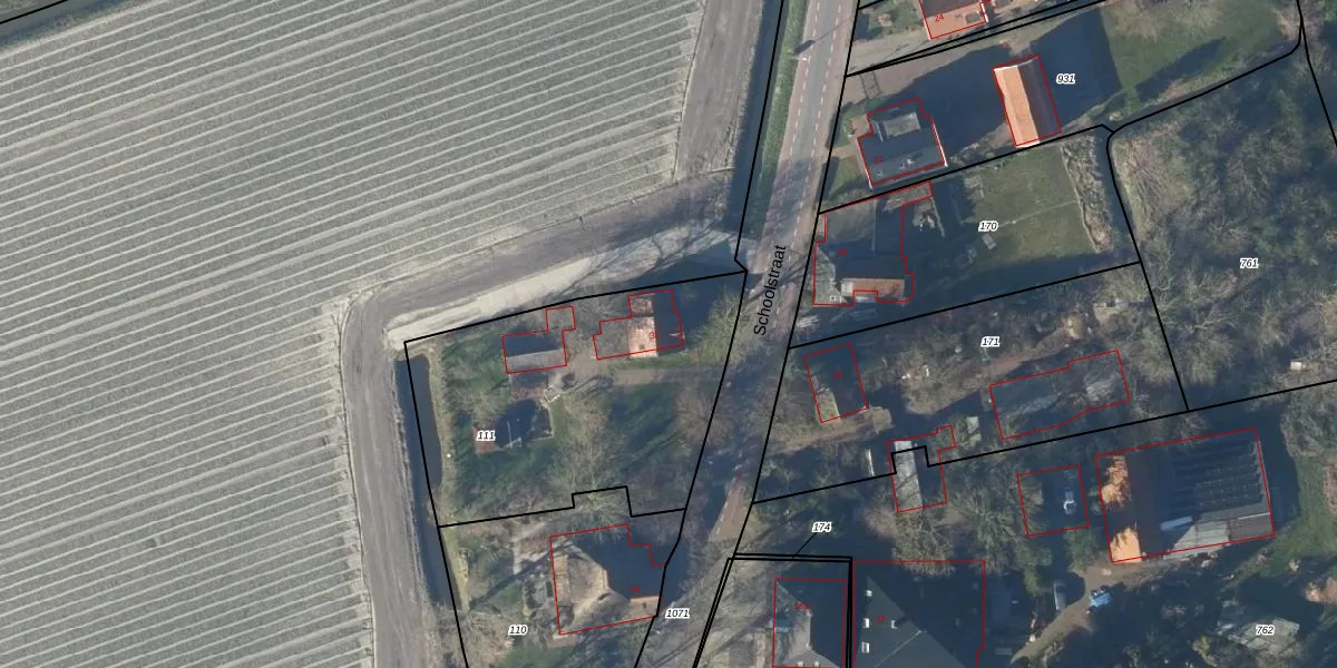 Het perceel waarop Schoolstraat 31 staat heeft een oppervlakte van 1380 m². Dit is een zeer groot perceel. De perceeloppervlakte wordt geregistreerd door het Kadaster. Gedetailleerde informatie over de maten van dit perceel kunt u vinden in het rapport Kadastrale kaart met maatvoering van Schoolstraat 31.