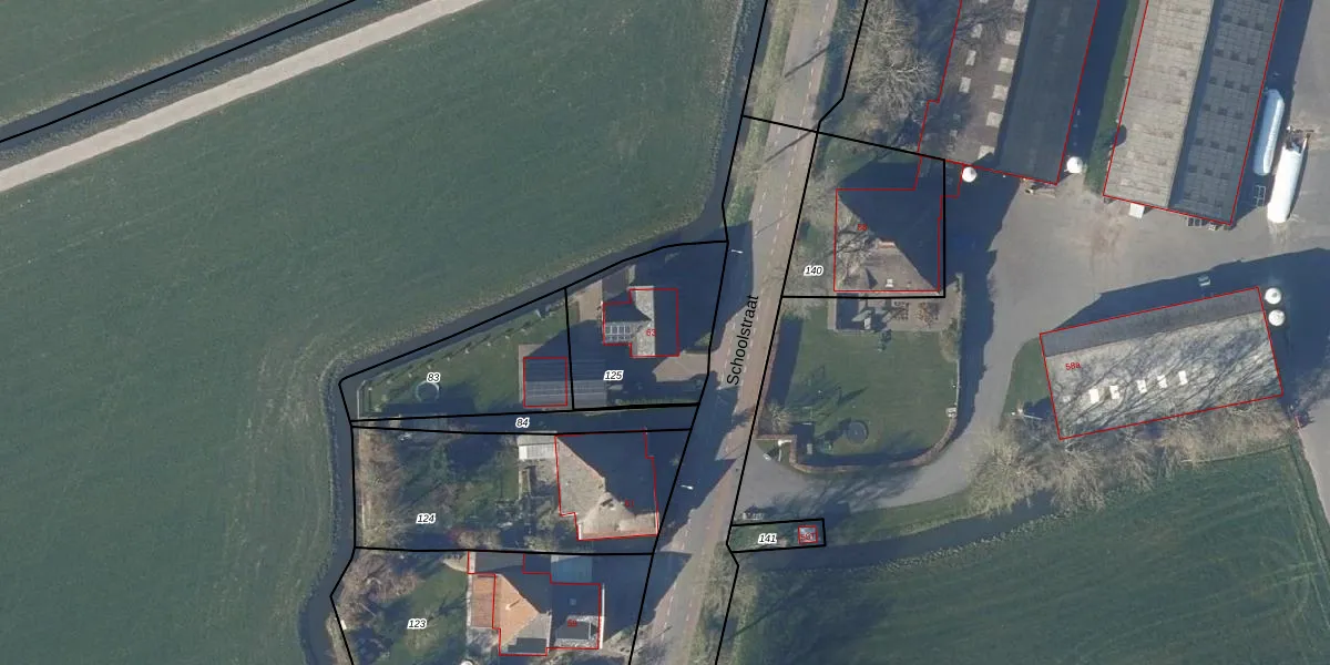 Het perceel waarop Schoolstraat 63 staat heeft een oppervlakte van 485 m². Dit is een groot perceel. De perceeloppervlakte wordt geregistreerd door het Kadaster. Gedetailleerde informatie over de maten van dit perceel kunt u vinden in het rapport Kadastrale kaart met maatvoering van Schoolstraat 63.