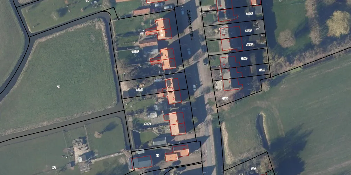 Het perceel waarop Zuiderzeestraat 33 staat heeft een oppervlakte van 376 m². Dit is een groot perceel. De perceeloppervlakte wordt geregistreerd door het Kadaster. Gedetailleerde informatie over de maten van dit perceel kunt u vinden in het rapport Kadastrale kaart met maatvoering van Zuiderzeestraat 33.