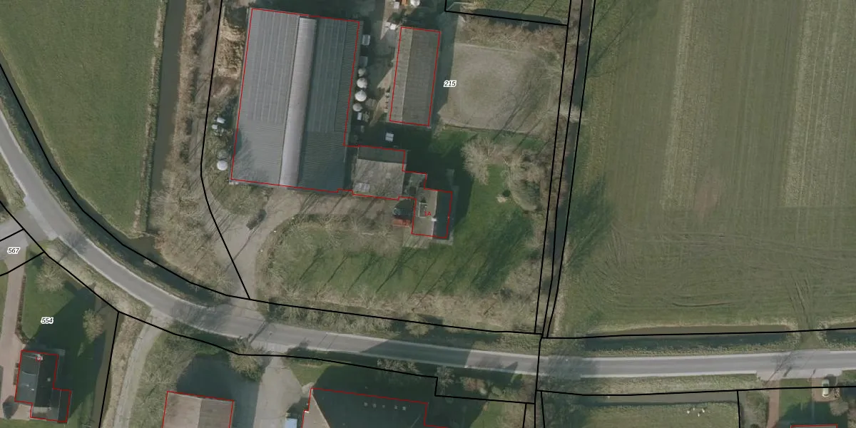 Het adres is gelegen op perceel 215 in de sectie J en de kadastrale gemeente Nieuwland Friesland. De kadastrale aanduiding is aldus NLD01-J-215. Het perceel is kleiner dan gemiddeld in Nieuwland Friesland. Het perceel is 7590 m² groot, terwijl het gemiddelde ligt op 1,4 ha. Het grootste perceel in de kadastrale gemeente is 42,1 ha. Het kleinste perceel heeft een oppervlakte van 0 m². Dit is het enige adres dat aanwezig is op het perceel. In de Basisregistratie Kadaster (BRK) werden de grenzen van het perceel geregistreerd op 10-10-2006.